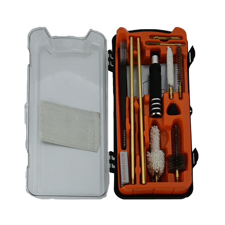 Súprava na čistenie zbraní – súprava pušky (.22,.25,.27,.30,.338) Kompaktné súpravy na čistenie zbraní vám poskytujú úplné profesionálne čistiace nástroje, ktoré vyhovujú rôznym kalibrom zbraní. Blistrové zásobníky vám ich pomôžu pravidelne zbierať.