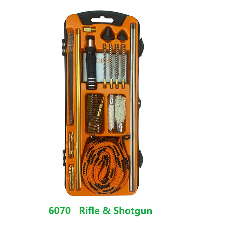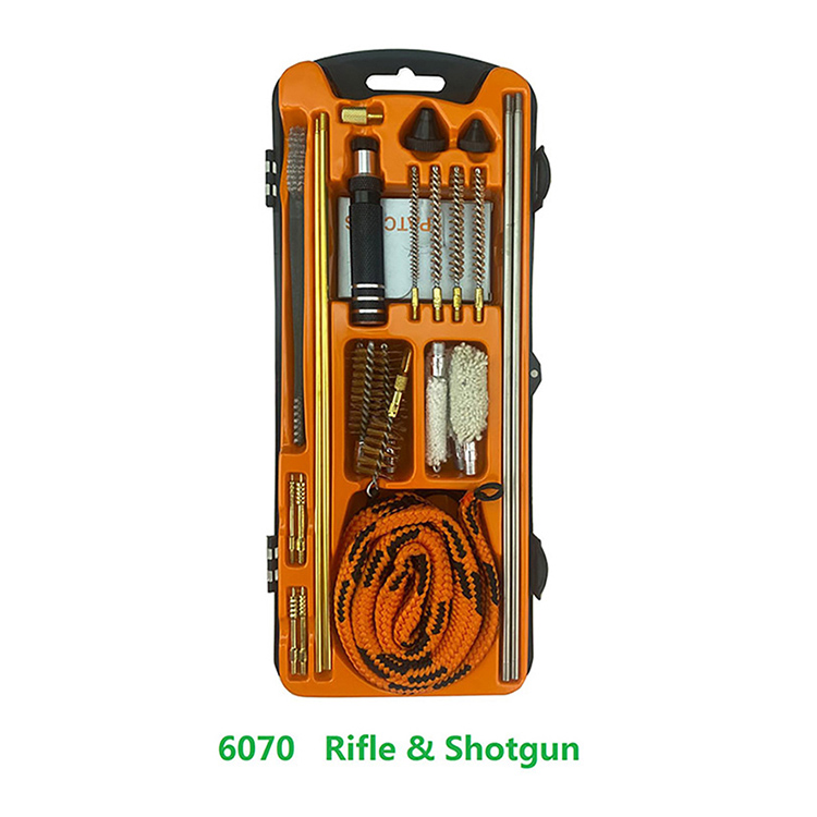 Súprava na čistenie brokovnice Veľké oranžové puzdro 12Ga, 8 mm silné tyče, lano ● Kompaktné pevné úložné puzdro. Jednoduché otváranie a zatváranie. ● Pohodlná a odolná, odnímateľná hliníková rukoväť súpravy na čistenie pištole; ● Výkonná a efektívna kefa na čistenie pištole mop mosadzný hrot špirálovej pružinovej kefy; ● Zaveste a pohodlne distribuujte dizajn blistrovej vložky. ● Lano na čistenie hadej pištole je súčasťou balenia.