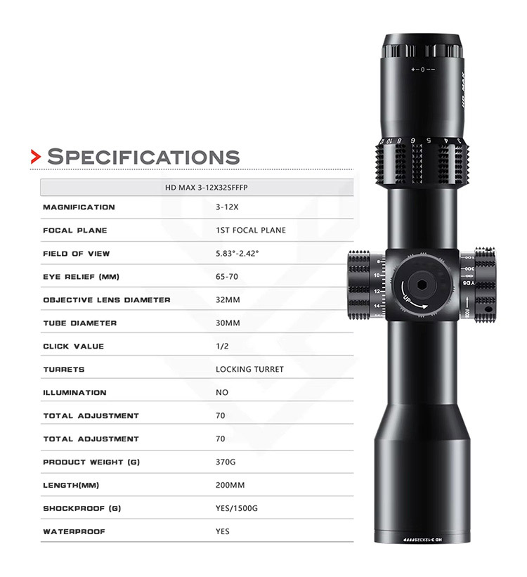 MAX 3-12X32SF FFP HD lovecký monokulárny ďalekohľad s vysokým objektívom veľkoobchod