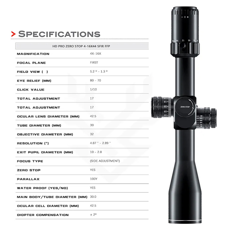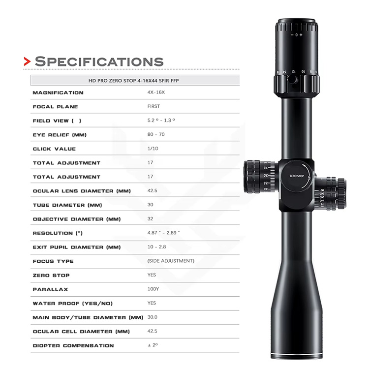 Optika HD PRO ZERO STOP 4-16x44 SFIR FFP High Shock Resistance Hunting