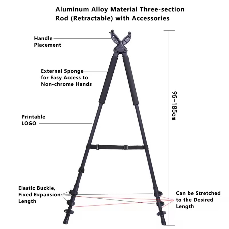 Vonkajšia taktická zbraň Prenosná podpera statívu Lovecká teleskopická strelecká tyč Rotačný statív v tvare V