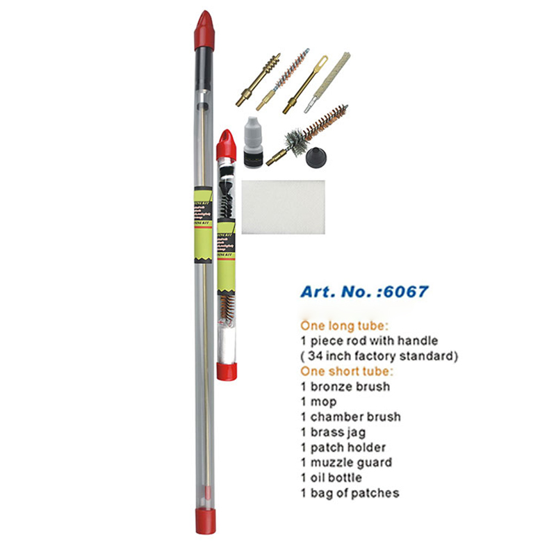 Súprava na čistenie pištole zabalená v rúre má mnoho výhod: dlhá tyč z jedného kusu s otočnou hliníkovou rukoväťou, bez rezania; rôzne kefy a príslušenstvo; balené v prenosnej dlhej tube. Pre používateľov s vysokými požiadavkami na čistenie pištole je to dobrá voľba.